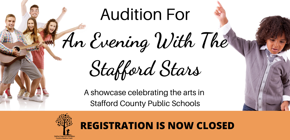 The Stafford Education Foundation is excited to invite all Stafford County Public Schools K-12 Students to audition to participate in An Evening with the Stafford Stars on May 1, 2021!